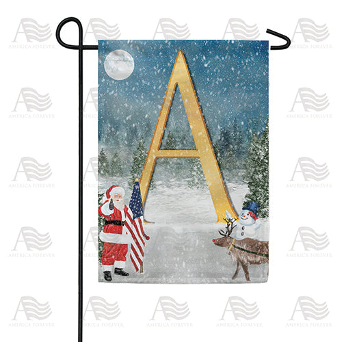 This patriotic Christmas design with your monogram is so special! 🇺🇸 Snowman and Santa saluting by the flag with that big golden yellow letter creates personalized holiday magic! ⛄