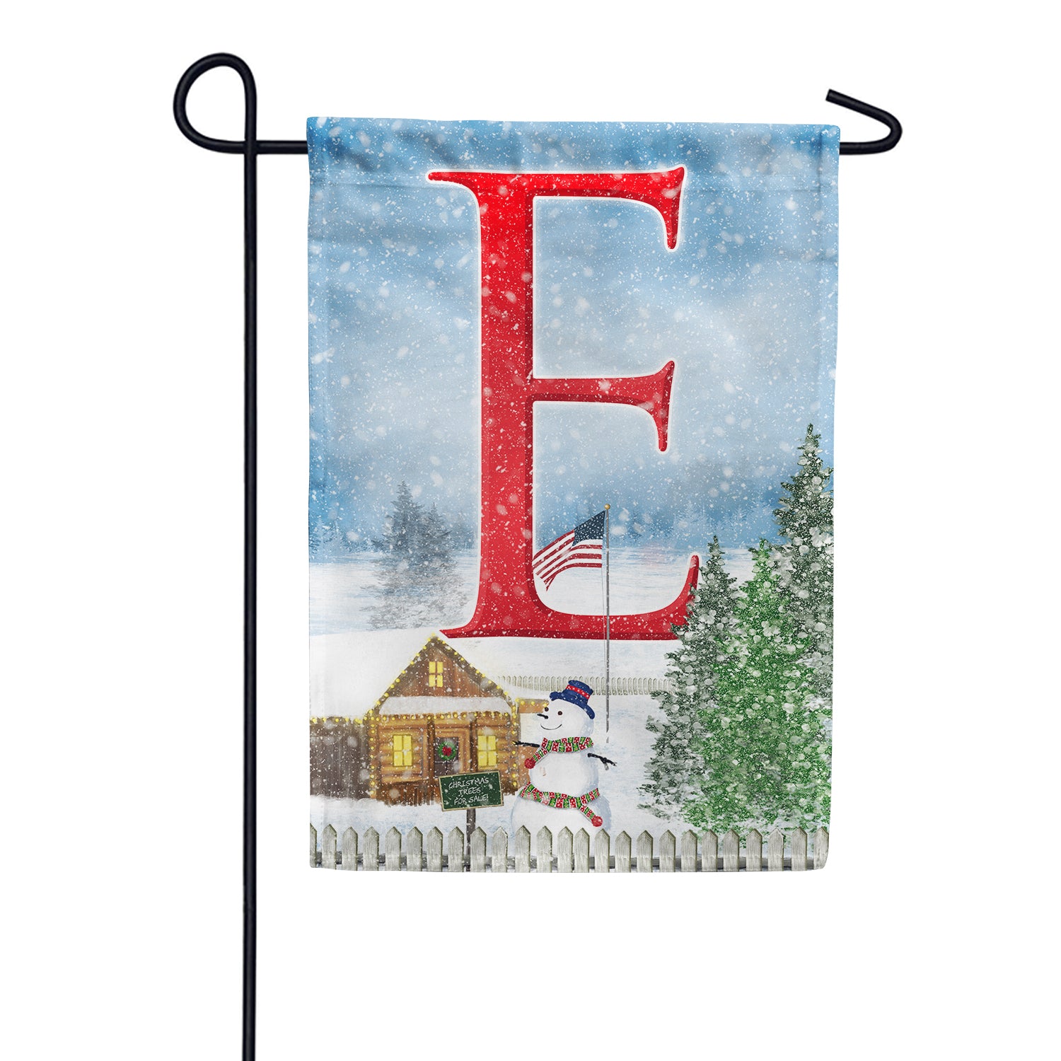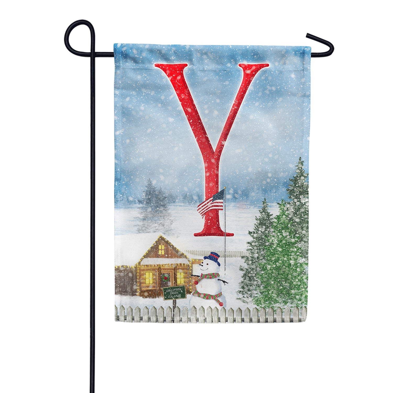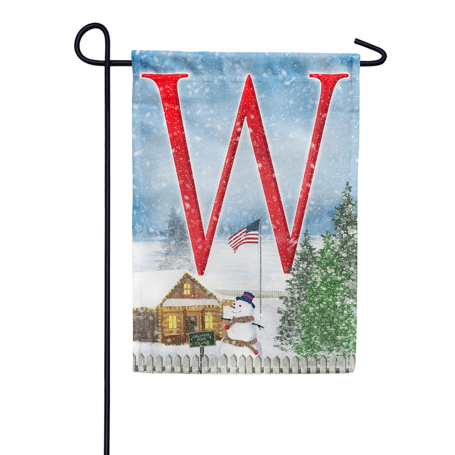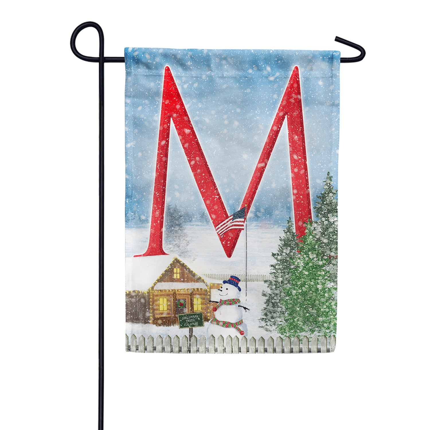 This crisp white winter design shows a snow-covered house with American flag and perky snowman! β The "Christmas Trees For Sale" sign with monogram in big red lettering brings such festive charm. Perfect holiday scene! π