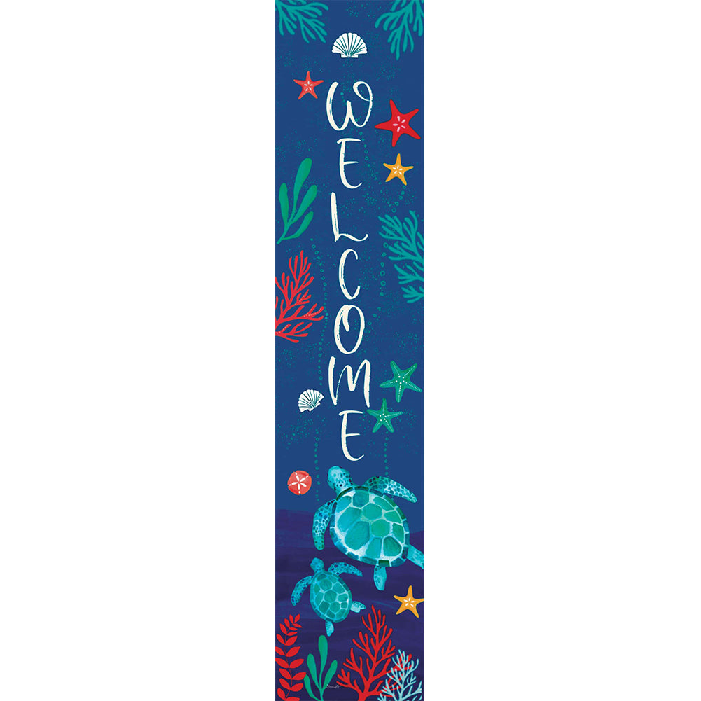 Discover this serene underwater paradise with "Welcome"! 🐢 Featuring graceful turtles mingling with starfish, seashells, and lush sea plants. Such tranquil ocean vibes for your entrance! ✨