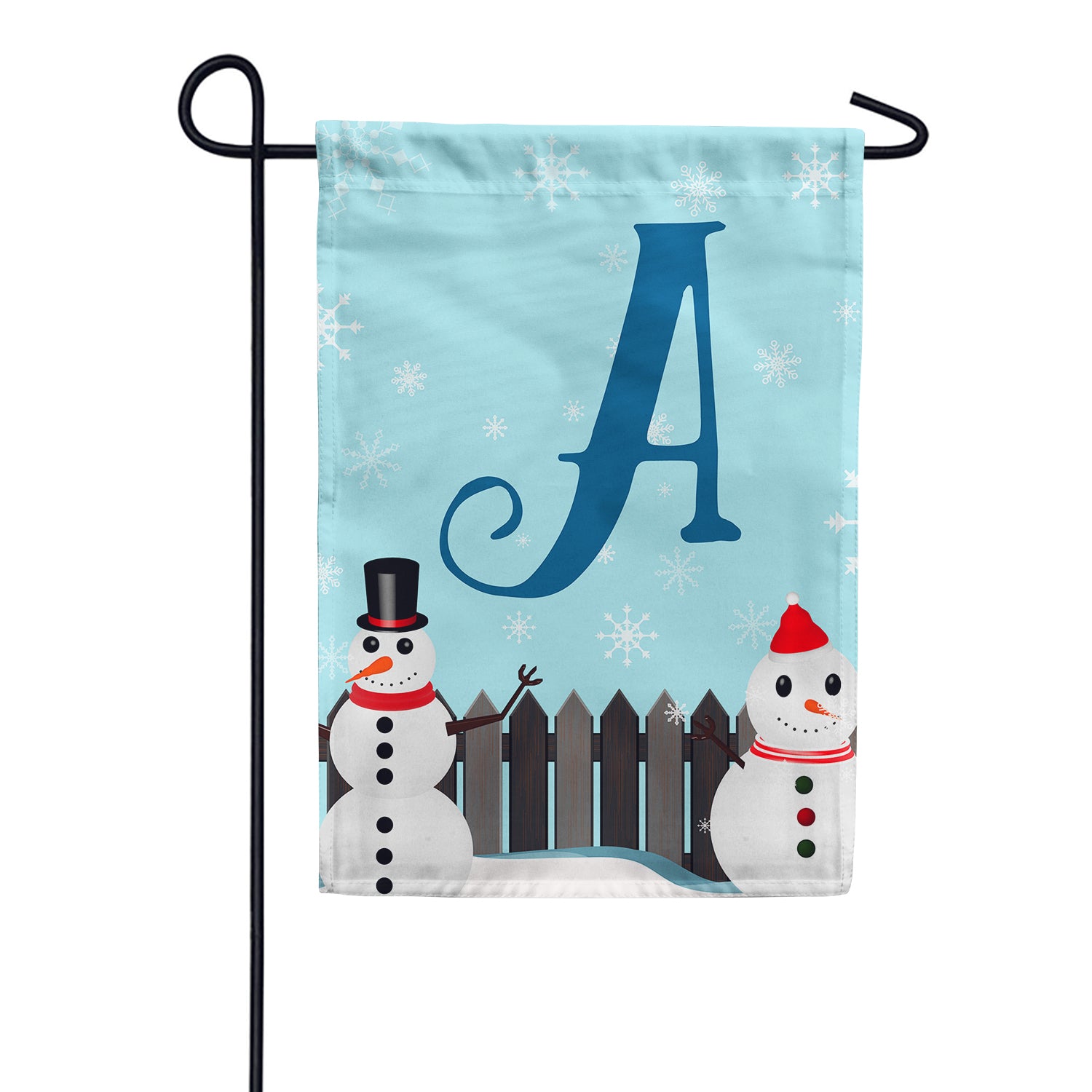 This cute pair of snowmen enjoying chilly weather by the wooden fence with monogram letter is adorable! ⛄ Such a charming personalized winter design with those lovely snowflakes. Perfect for snowy season! ❄️
