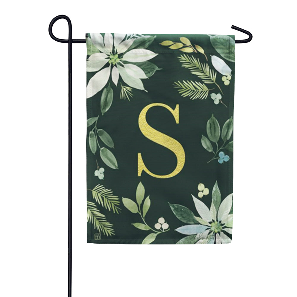 This beautiful Christmas design features white poinsettia flowers, leaves and berries! 🌸 The pretty gold monogram letter in the center adds such elegant personalized charm. Perfect holiday style! ✨