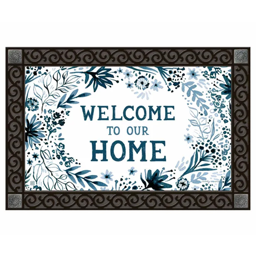 This enchanting design features floral wreath accents on serene white backdrop! 🌸 "Welcome to our Home" message invites you to discover your joyful sanctuary. Such peaceful welcoming vibes! ✨