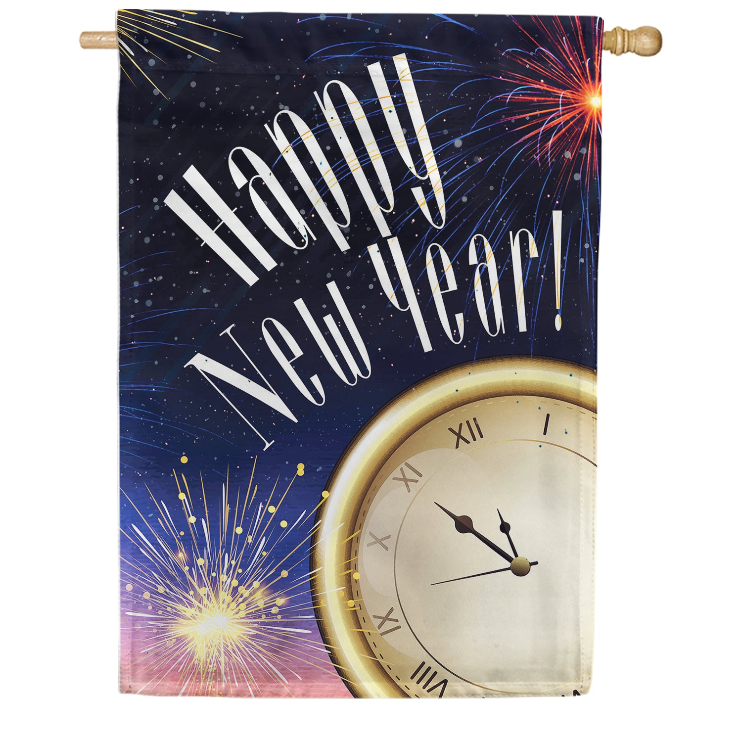 Get ready to ring in the New Year with style! 🎊 That clock striking midnight with "Happy New Year" and fireworks bursts is giving major celebration vibes. Time to party! ✨