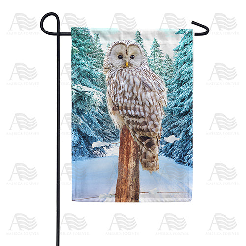 This Winter flag brings forest owl wisdom! 🦉 That barred owl perched on old fence post creates such serene woodland winter charm. Perfect for nature lovers! ❄️