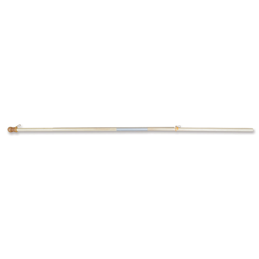 2 Piece Wooden Flag Pole from Premier is made from two pieces connected by a heavy duty anodized aluminum ferrule. Plastic outer swiveling tube included helps prevent tangling. Premier Wooden Flag Pole comes with genuine wooden finial and flag clips. Can be used with over sized flags.