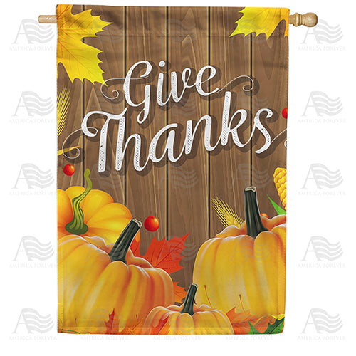 Get ready for thanksgiving vibes with "Give Thanks"! 🎃 Those beautiful pumpkins, corn, and fall leaves on the rustic wooden background bring such perfect harvest celebration. Classic autumn goodness! 🍂