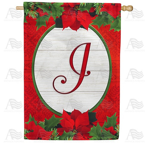 Red Poinsettia Monogram I House Flag from America Forever. (Stand not included - see Related Products below)